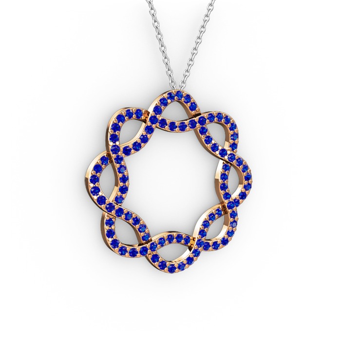 Lab safir 14 ayar rose altın kolye (40 cm beyaz altın rolo zincir)