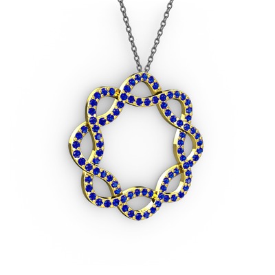 Lab safir 8 ayar altın kolye (40 cm gümüş rolo zincir)