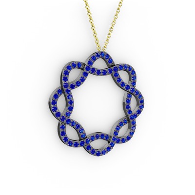 Lab safir 925 ayar siyah rodyum kaplama gümüş kolye (40 cm altın rolo zincir)