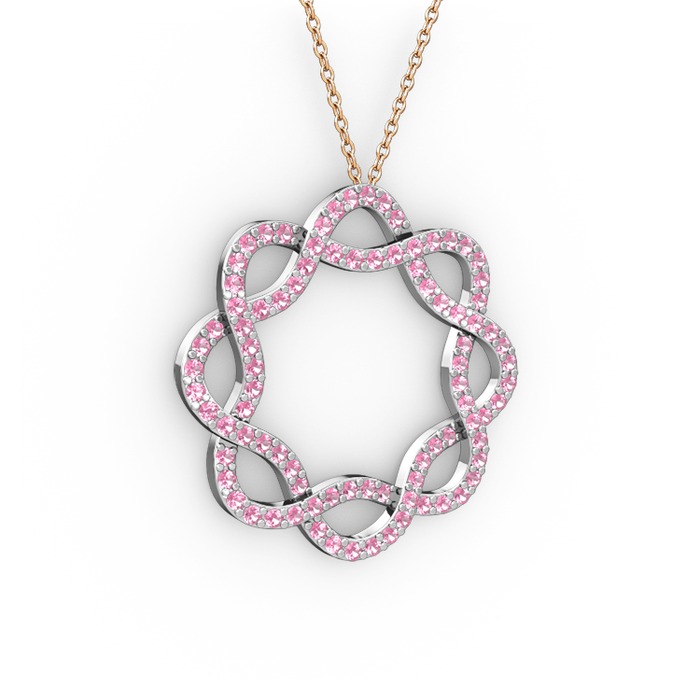 Pembe kuvars 8 ayar beyaz altın kolye (40 cm rose altın rolo zincir)