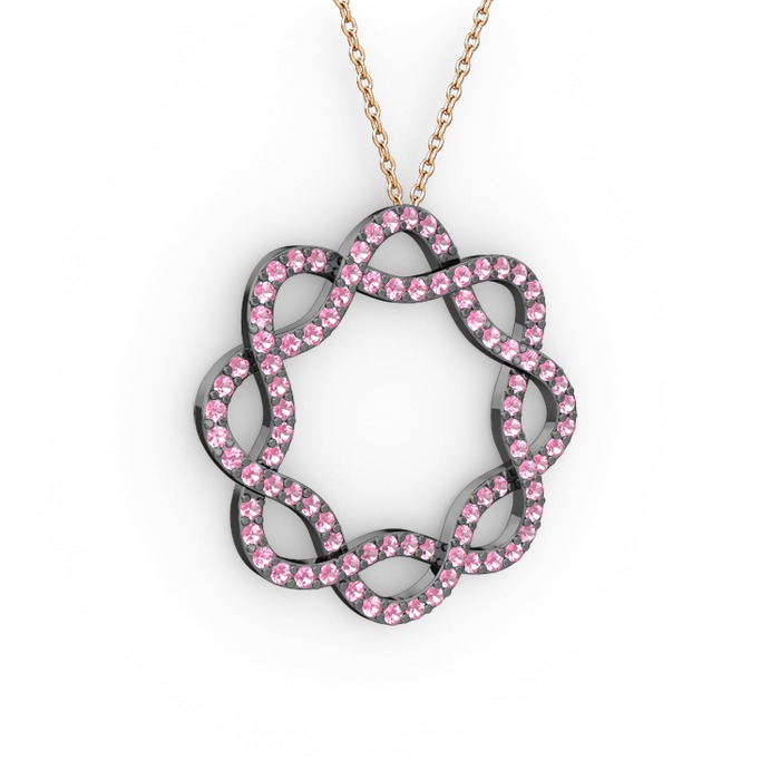 Pembe kuvars 925 ayar siyah rodyum kaplama gümüş kolye (40 cm rose altın rolo zincir)