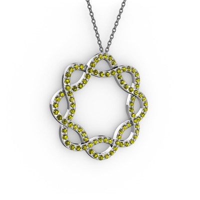 Peridot 14 ayar beyaz altın kolye (40 cm gümüş rolo zincir)