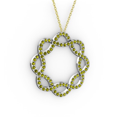 Peridot 14 ayar beyaz altın kolye (40 cm gümüş rolo zincir)
