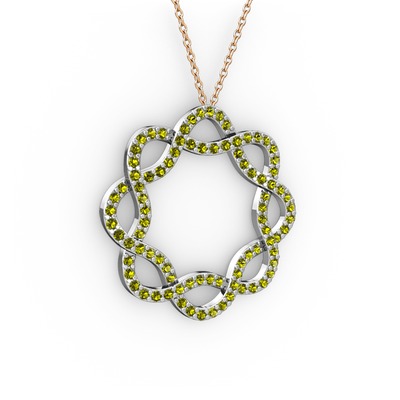 Peridot 18 ayar beyaz altın kolye (40 cm rose altın rolo zincir)