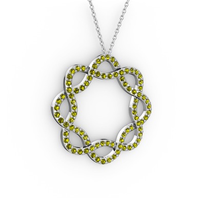 Peridot 8 ayar beyaz altın kolye (40 cm beyaz altın rolo zincir)