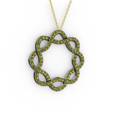 Peridot 925 ayar siyah rodyum kaplama gümüş kolye (40 cm altın rolo zincir)