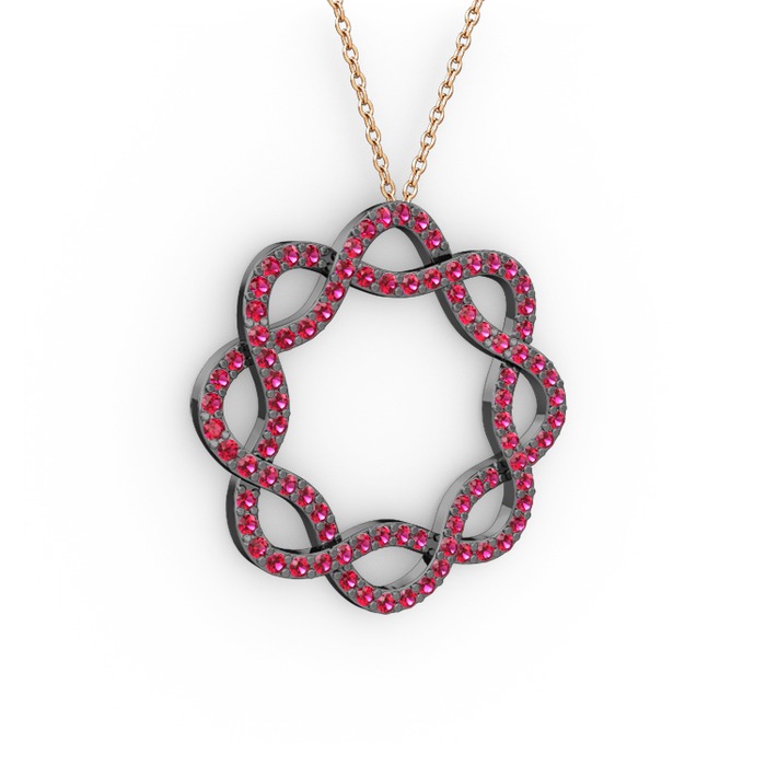 Rodolit garnet 925 ayar siyah rodyum kaplama gümüş kolye (40 cm gümüş rolo zincir)