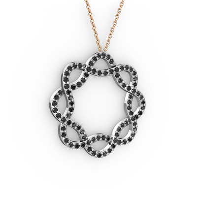 Siyah zirkon 8 ayar beyaz altın kolye (40 cm rose altın rolo zincir)