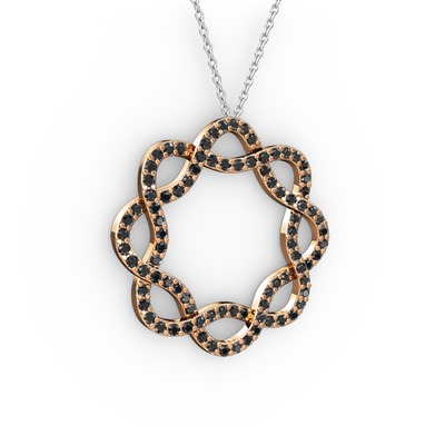 Siyah zirkon 8 ayar rose altın kolye (40 cm beyaz altın rolo zincir)