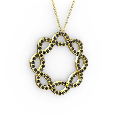 Siyah zirkon 925 ayar altın kaplama gümüş kolye (40 cm altın rolo zincir)