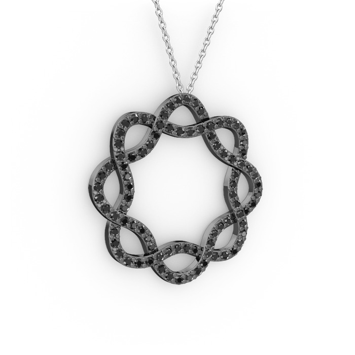 Siyah zirkon 925 ayar siyah rodyum kaplama gümüş kolye (40 cm beyaz altın rolo zincir)