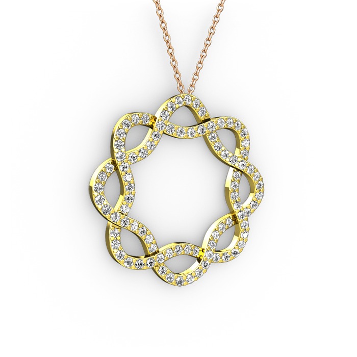 Swarovski 14 ayar altın kolye (40 cm rose altın rolo zincir)