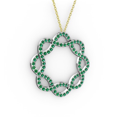 Yeşil kuvars 18 ayar beyaz altın kolye (40 cm altın rolo zincir)