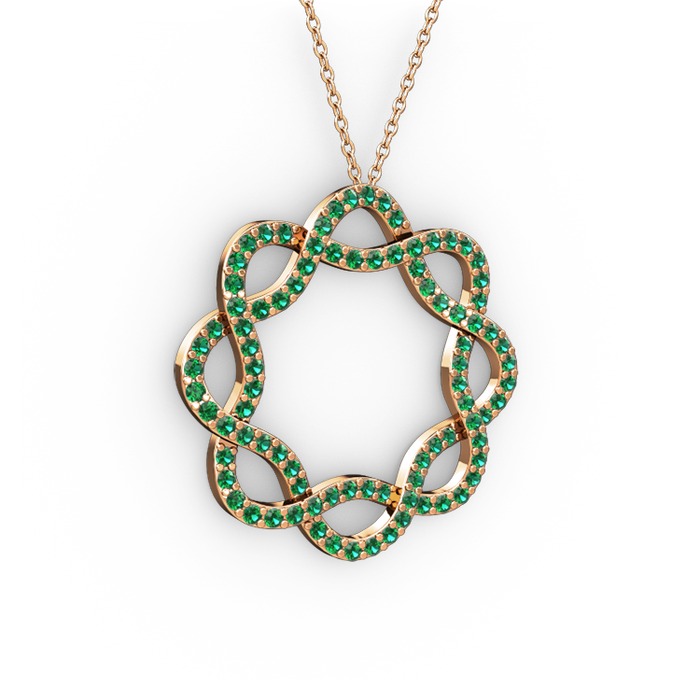 Yeşil kuvars 8 ayar rose altın kolye (40 cm gümüş rolo zincir)