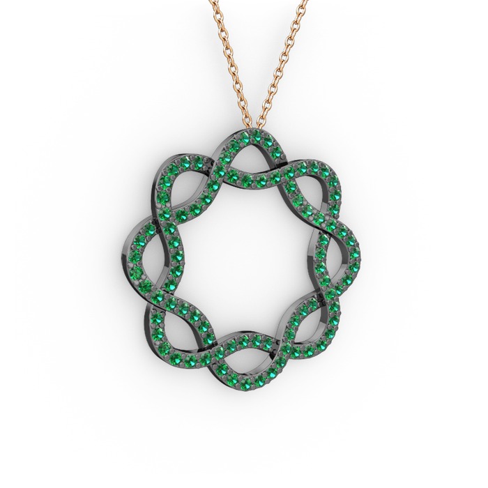 Yeşil kuvars 925 ayar siyah rodyum kaplama gümüş kolye (40 cm rose altın rolo zincir)