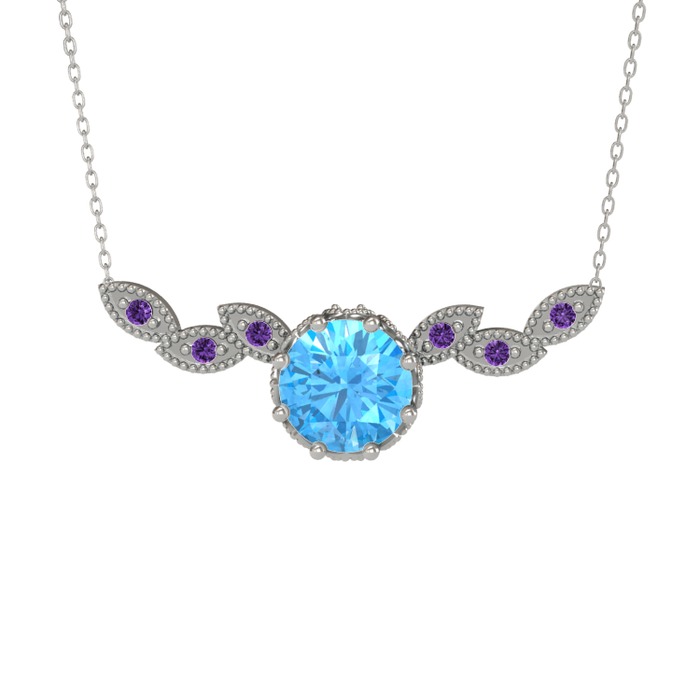Akuamarin ve ametist 14 ayar beyaz altın kolye (40 cm beyaz altın rolo zincir)
