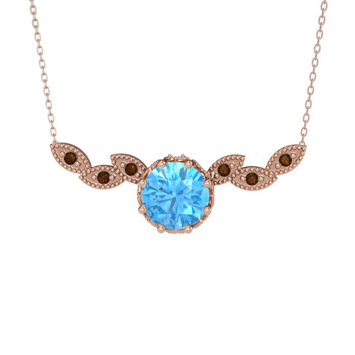 Akuamarin ve dumanlı kuvars 14 ayar rose altın kolye (40 cm rose altın rolo zincir)