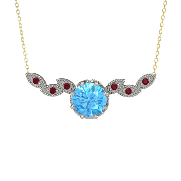 Akuamarin ve kök yakut 14 ayar beyaz altın kolye (40 cm altın rolo zincir)