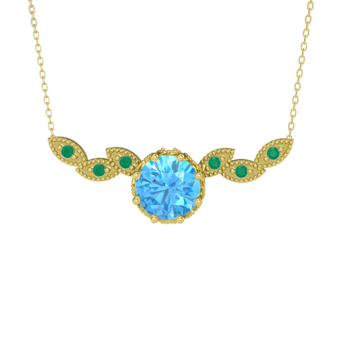Akuamarin ve kök zümrüt 925 ayar altın kaplama gümüş kolye (40 cm altın rolo zincir)