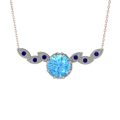Akuamarin ve lab safir 8 ayar beyaz altın kolye (40 cm gümüş rolo zincir)