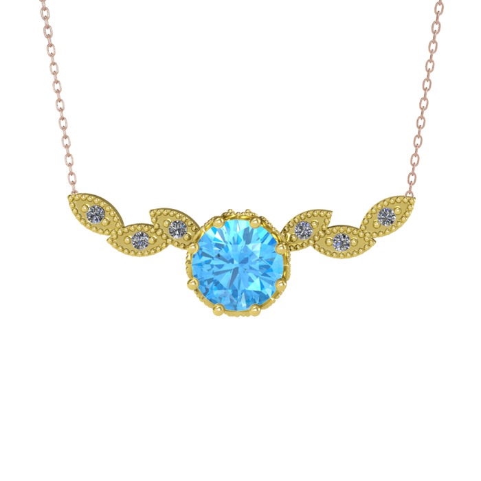 Akuamarin ve pırlanta 8 ayar altın kolye (0.12 karat, 40 cm rose altın rolo zincir)