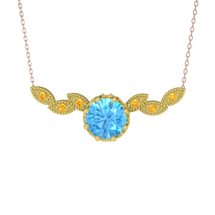 Akuamarin ve sitrin 8 ayar altın kolye (40 cm rose altın rolo zincir)
