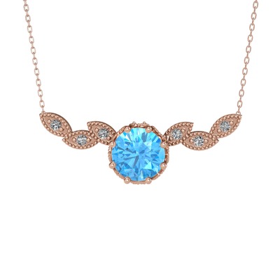 Akuamarin ve swarovski 18 ayar rose altın kolye (40 cm rose altın rolo zincir)
