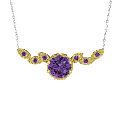 Ametist 18 ayar altın kolye (40 cm gümüş rolo zincir)