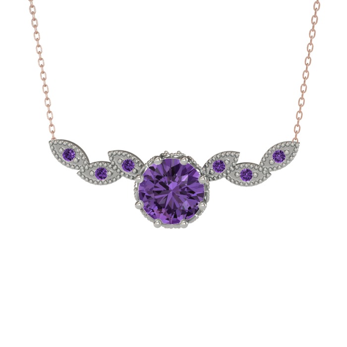 Ametist 18 ayar beyaz altın kolye (40 cm rose altın rolo zincir)