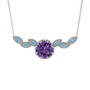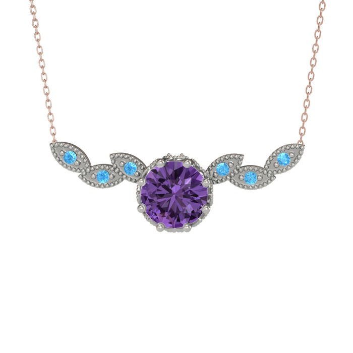 Ametist ve akuamarin 14 ayar beyaz altın kolye (40 cm rose altın rolo zincir)