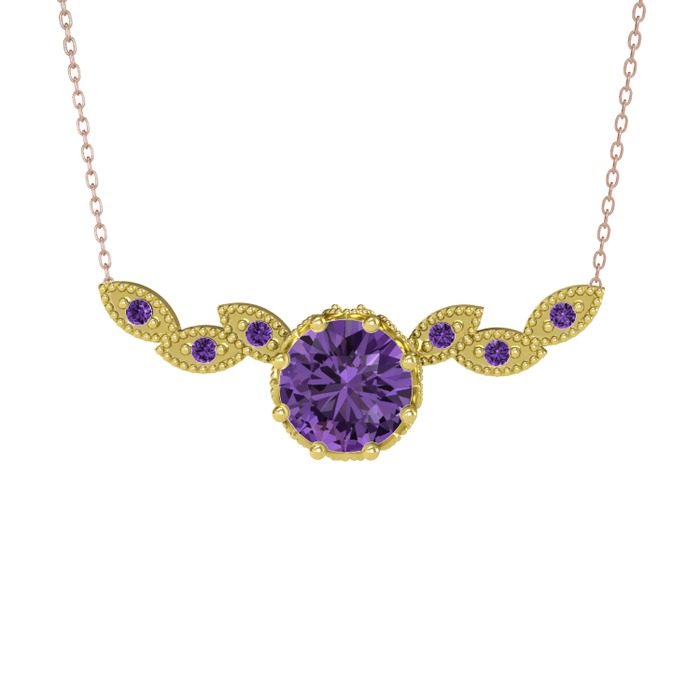 Ametist 925 ayar altın kaplama gümüş kolye (40 cm rose altın rolo zincir)