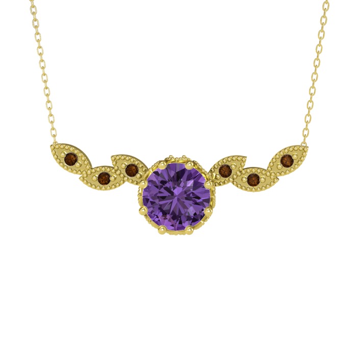 Ametist ve dumanlı kuvars 8 ayar altın kolye (40 cm altın rolo zincir)