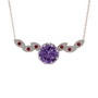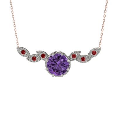 Ametist ve garnet 18 ayar beyaz altın kolye (40 cm rose altın rolo zincir)