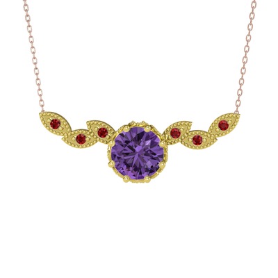 Ametist ve garnet 8 ayar altın kolye (40 cm gümüş rolo zincir)