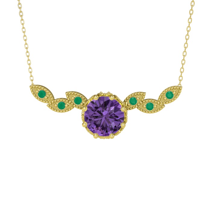 Ametist ve kök zümrüt 14 ayar altın kolye (40 cm altın rolo zincir)