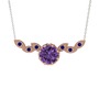 Ametist ve lab safir 14 ayar rose altın kolye (40 cm gümüş rolo zincir)