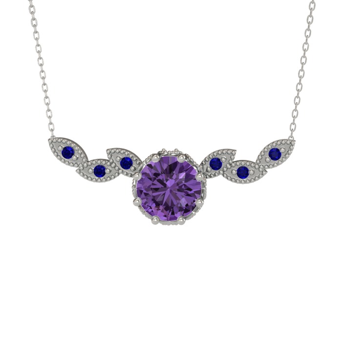 Ametist ve lab safir 925 ayar gümüş kolye (40 cm beyaz altın rolo zincir)