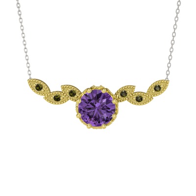 Ametist ve peridot 18 ayar altın kolye (40 cm beyaz altın rolo zincir)