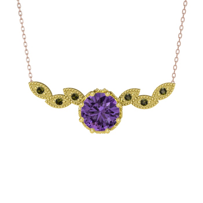 Ametist ve peridot 18 ayar altın kolye (40 cm rose altın rolo zincir)