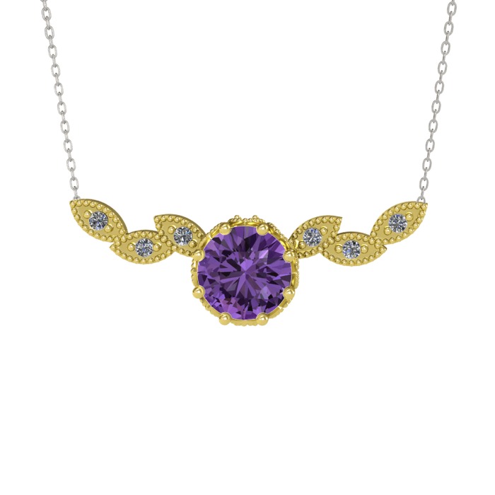 Ametist ve pırlanta 14 ayar altın kolye (0.12 karat, 40 cm gümüş rolo zincir)