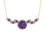 Ametist ve rodolit garnet 18 ayar beyaz altın kolye (40 cm altın rolo zincir)