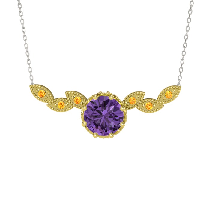 Ametist ve sitrin 18 ayar altın kolye (40 cm beyaz altın rolo zincir)