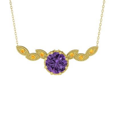 Ametist ve sitrin 8 ayar altın kolye (40 cm altın rolo zincir)