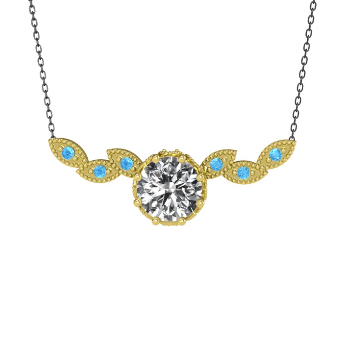 Beyaz zirkon ve akuamarin 14 ayar altın kolye (40 cm gümüş rolo zincir)