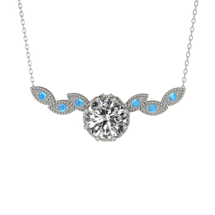 Beyaz zirkon ve akuamarin 925 ayar gümüş kolye (40 cm beyaz altın rolo zincir)
