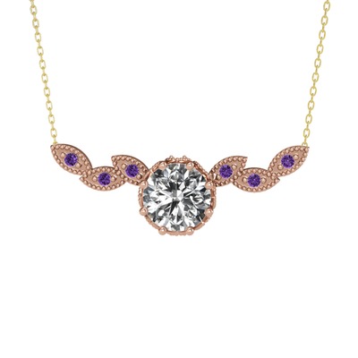 Beyaz zirkon ve ametist 8 ayar rose altın kolye (40 cm altın rolo zincir)