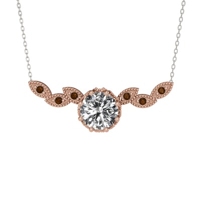 Beyaz zirkon ve dumanlı kuvars 18 ayar rose altın kolye (40 cm beyaz altın rolo zincir)