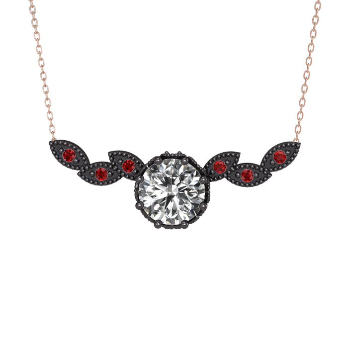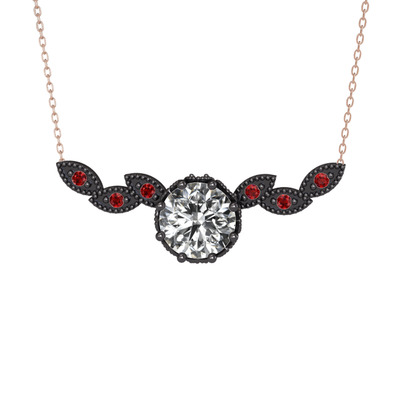 Beyaz zirkon ve garnet 925 ayar siyah rodyum kaplama gümüş kolye (40 cm rose altın rolo zincir)