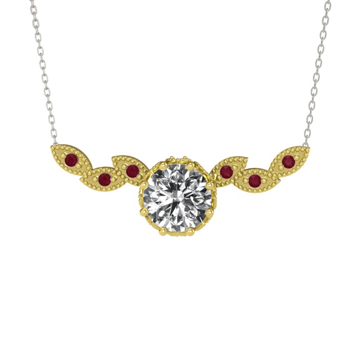 Beyaz zirkon ve kök yakut 14 ayar altın kolye (40 cm gümüş rolo zincir)