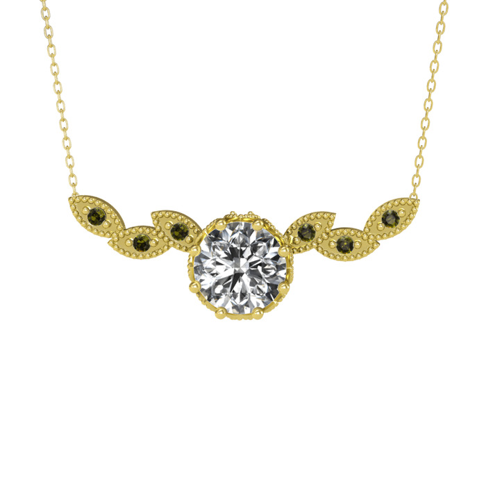 Beyaz zirkon ve peridot 8 ayar altın kolye (40 cm altın rolo zincir)